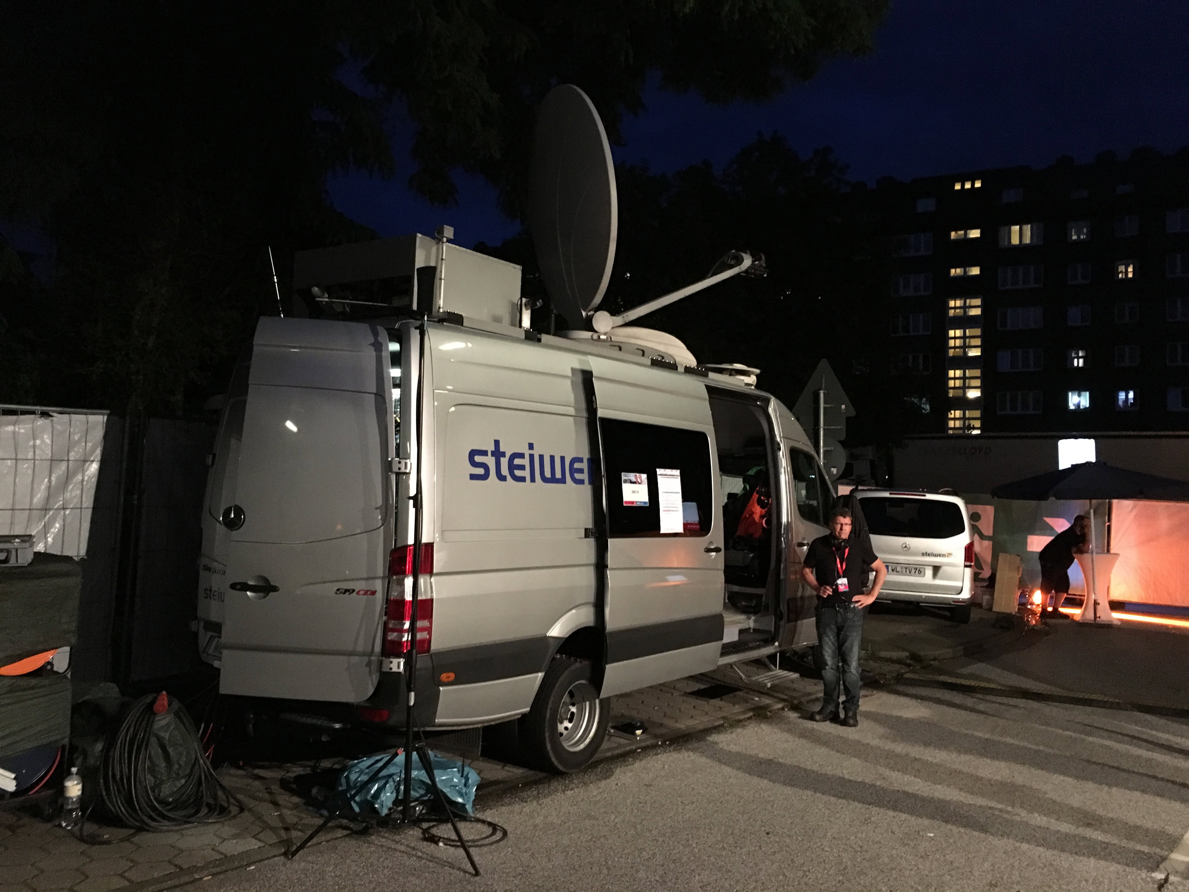 Im Auftrag von TVN durften wir in diesem Jahr mit sechs Kameras die Louder Stage in diesem Jahr produzieren. Zum einen habe wir die LED Wände bespielt und die Konzerte für die Telekom und andere Abnehmer übertragen. Das Kreativ Personal kam von Livenation. Unsere DSNG 2 HD stand direkt an der Bühne, der Sound für unseren Feed wurde im TV-Compound hinter der Hauptbühne gemischt. Über Glasfaser waren wir auch mit unseren Sender-Regien im TVN Ü3 und in der Bullhead City verbunden.
