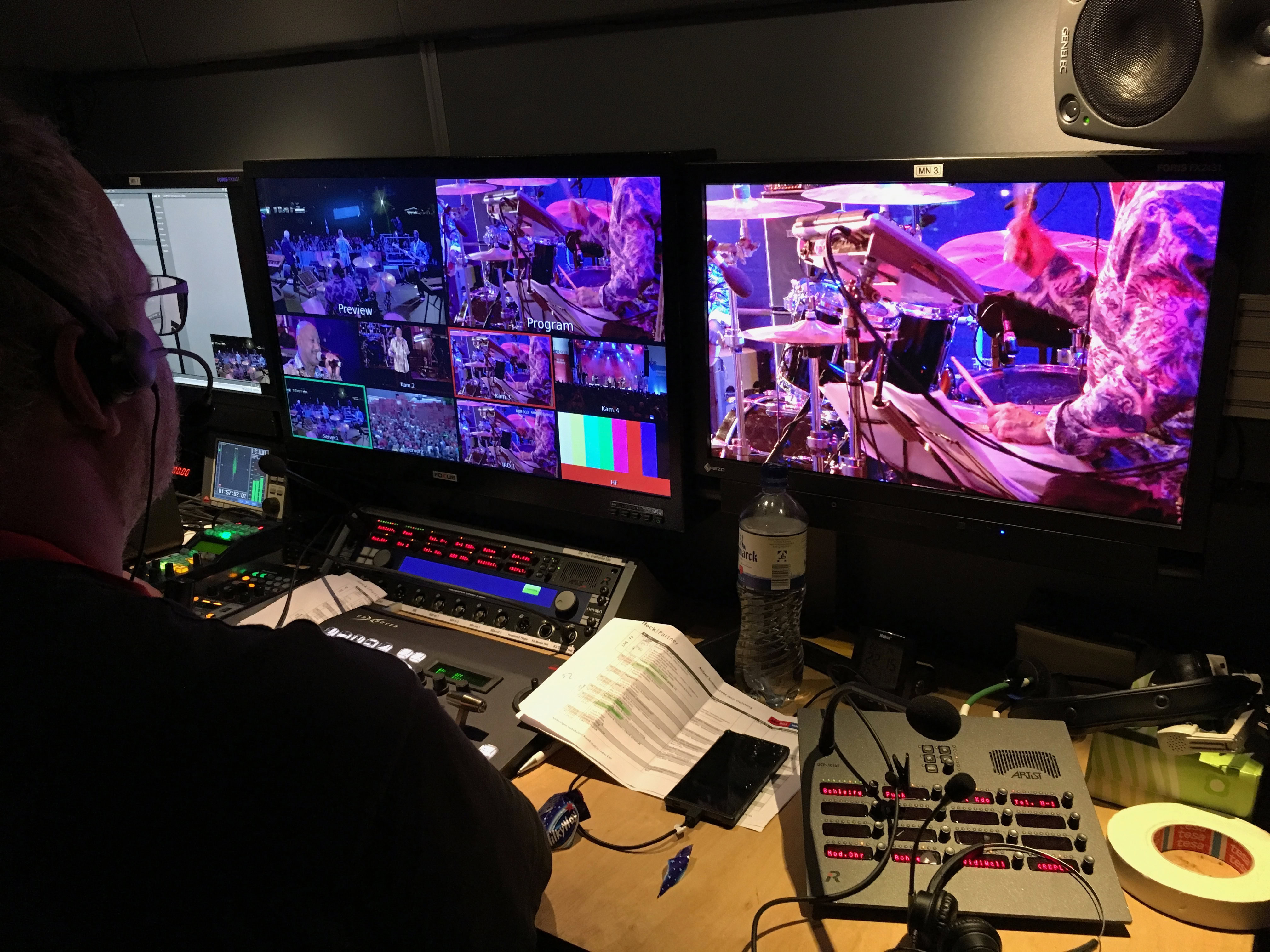 Gemeinsam mit Vahlandt TV haben wir die an vier Tagen 40 Konzerte mit jeweils vier Kameras und drei Regien übertragen. Den guten Jazzsound haben uns Tonwagen öffentlicher Sender unter der Leitung von Radio Bremen zugeliefert. Von der ÖVB Arena bis zum Schlachthof haben wir unsere vier TV Produktionsfahrzeuge über die gesamte Messe Bremen vernetzt.